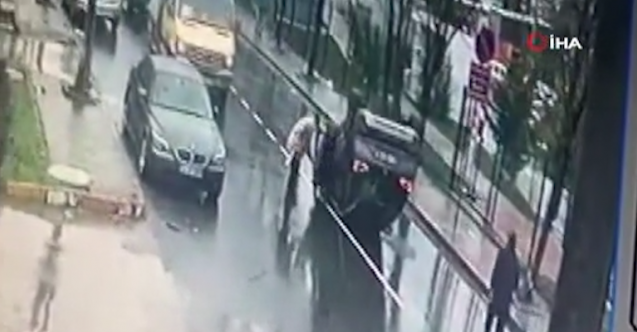 Beylikdüzü’nde cadde üzerinde seyreden araç, düz yolda aniden ağaca çarpıp takla attı. Sürücüsünün hafif yaralandığı kaza anı güvenlik kamerası tarafından kaydedildi.