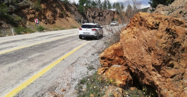 Bursa’da Keles karayolunda yağış birlikte yol kenarında yamaçlardan düşen kayalar tehlike saçıyor.