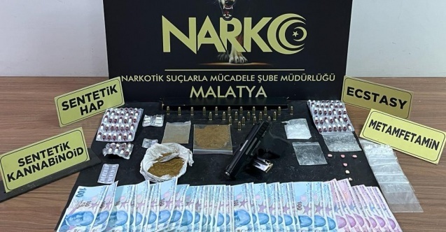Malatya İl Emniyet Müdürlüğü Narkotik Suçlarla Mücadele Şube Müdürlüğü görevlileri, uyuşturucu madde ticareti yaptığı iddia edilen 2 şahsın üzerinde, iş yerinde ve araçlarında yapılan aramada; 140 adet hap, 24.46 gram metamfetamin, 43 gram sentetik kannabinoid,1 adet ruhsatsız tabanca ve 30 adet fişek ile uyuşturucu madde ticaretinden elde edildiği değerlendirilen 4.760 TL ele geçirildi. İşlemlerinin ardından adli makamlara sevk edilen zanlılardan E.A. tutuklanırken, A.B.’ye ise adli kontrol uygulandı.