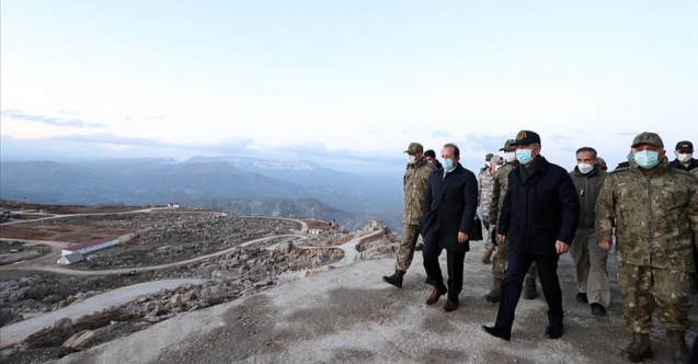 Cudi ve Gabar'ın arasında kalan, terörle mücadele operasyonlarında önemli bir yere sahip Namaz Dağı bölgesindeki jandarma komando taburunda incelemelerde bulunan Akar, görevlerindeki başarılarından dolayı jandarma birliklerini tebrik etti.