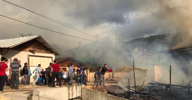 Bolu’da 2 ev, 3 samanlık alev alev yandı