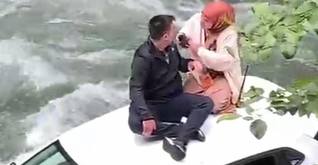 Rize’de Çat Deresi’ne uçan aracın içindeki çift, jandarma ekibi tarafından halatlarla kurtarıldı. Başlarından yaralanan çift, aracın üzerine çıkarak yardım bekledi. Ekiplerin yoğun çabası sayesinde kurtarılan Güçer çifti hastaneye kaldırıldı.