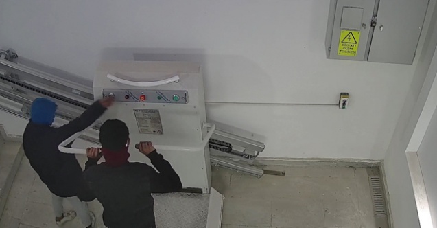 Kırıkkale'de kimliği belirsiz iki genç, engelliler ve yaşlılar için yapılan asansöre zarar verdi. O anlar güvenlik kamerasına yansıdı.