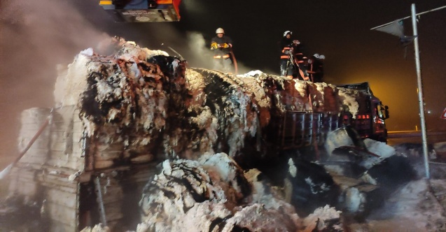 Malatya'da pamuk yüklü tırın dorsesi alev alev yandı