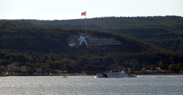 Marmara Denizi’nden saat 16.15 sıralarında Çanakkale Boğazı’na giriş yapan Romanya Donanmasına bağlı Mai 0201 devriye gemisi ile Rusya’nın Karadeniz filosuna ait 490 borda numaralı ’Admiral Essen’ adlı savaş gemisi, saat 17.45 sıralarında Çanakkale önlerinde oldu. ‘Dur Yolcu’ sembolü ile Kilitbahir Kalesi önünden geçerek Ege Denizi’ne doğru yol alan savaş gemilerine Türk Sahil Güvenlik botları eşlik etti.
