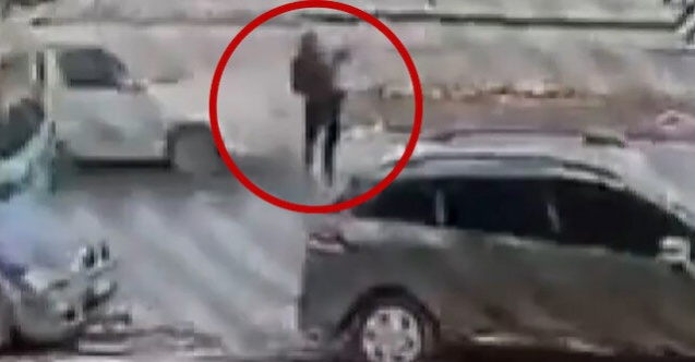 Kaza anı ise bir iş yerinin güvenlik kamerasına yansıyan görüntülerde, kaldırımda yürüyen U.K.'nın, havlayarak üzerine gelen köpekten korkup yola doğru koşması ve otomobilin çarpması sonucu havada takla atması görülüyor.