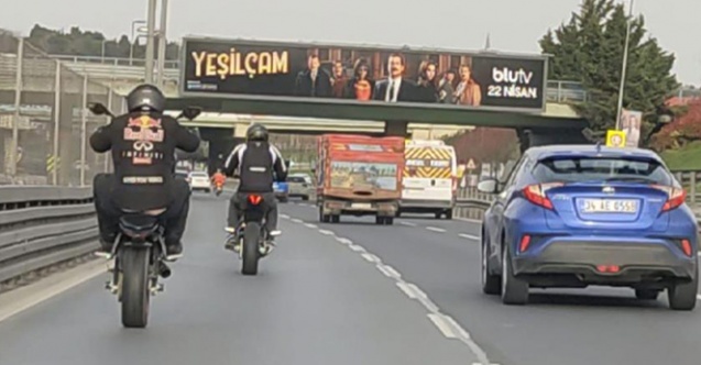 E-5 karayolunu boş bulan motosikletli iki sürücü, seyir halinde iken tehlikeli hareketlerde bulunarak trafiği riske soktular. Motosikletlerinin önlerini kaldıran sürücülerin tehlikeleri anları ise kameraya yansıdı.