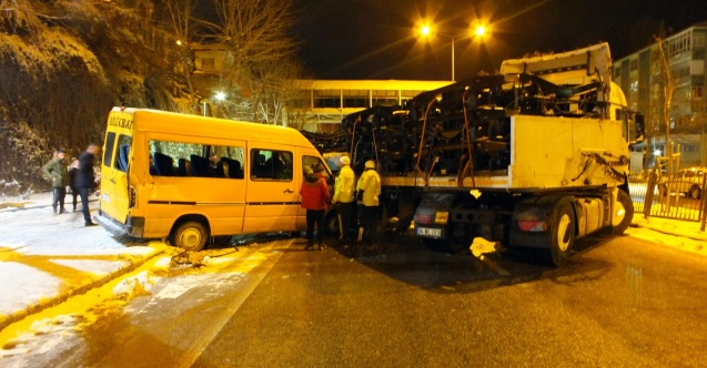 Kaza nedeniyle kapanan yolda araç kuyrukları oluştu. Kaza yerine giren bir TIR, kayarak duran otomobillere çarptı. TIR'ın çarptığı anlar ise kameraya yansıdı. TIR'ın ardından gelen araçların da çarpışmasıyla zincirleme kaza meydana geldi.