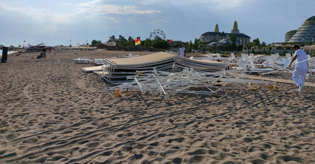 Kısa süren ancak etkili olan hortumun ardından sahilde savrulan gölgelik ve şezlonglar otel görevlileri tarafından toplanarak yeniden düzenleme yapıldı.