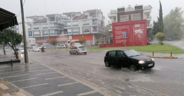 Manavgat’ta 10. gün sonunda kontrol altına alınan orman yangınlarından sonra gelen sağanak yağış, doğal soğutma çalışması etkisi yaptı. 15 dakika süren sağanak yağış tüm ilçeyi etkisi altına alırken, yoğun yağıştan dolayı araç trafiğinde aksamalar yaşadı.
