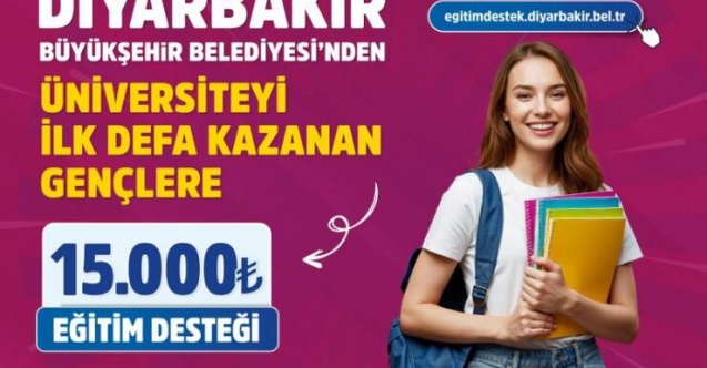 Diyarbakır Büyükşehir Belediyesi, bu yıl üniversiteye ilk defa yerleşen 3 bin öğrenciye 15 bin TL eğitim desteği verecek.Büyükşehir Belediyesi, 13 Ağustos’tan önce Diyarbakır’da ikamet eden ve üniversiteye ilk kez kayıt yapan öğrencilere eğitim desteği verecek. Sosyal Hizmetler Daire Başkanlığınca yürütülecek proje kapsamında devlet ile özel üniversiteleri yüzde yüz burslu kazanarak ilk defa üniversiteye kayıt yaptıran 30 yaş ve altı 3 bin öğrenciye, 2 ay arayla 5’er bin TL olmak üzere toplam 15 bin TL eğitim desteği verilecek.3 Ekim’de başlayan müracaatlar, 1 Kasım’da sona erecek. Öğrenciler https://egitimdestek.diyarbakir.bel.tr/ adresine TC kimlik numarası, isim ve soyisim bilgilerini girerek başvuru yapabilecek. Devlet Üniversitelerine Genel Yetenek Sınavı’yla yerleşen öğrenciler ile Vakıf/Özel üniversitelere %100 burslu yerleşen öğrenciler ise belgelerini elden teslim ederek başvuru yapacak. Başvuru evraklarının kontrol edilmesinin ardından belirlenen tarihlerde söz konusu destekler öğrencilerin hesaplarına yatırılacak.