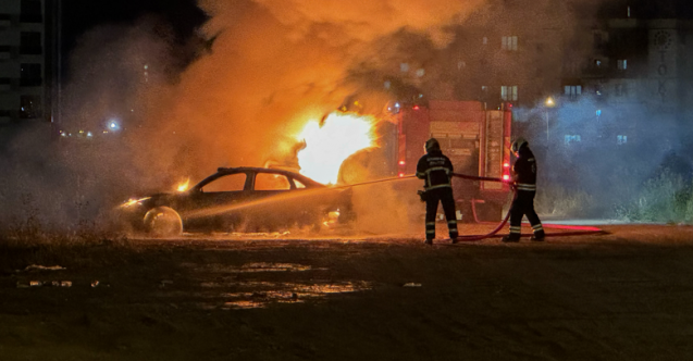 Diyarbakır'ın merkez Kayapınar ilçesinde park halindeyken alev alan otomobil yandı.
