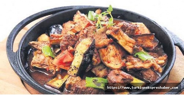 YAPILIŞI: Et küçük parçalara ayrılır. Kırmızıbiber, karabiber ve tuzla birlikte iyice karıştırılarak ovulur. Etler tencerenin dibine yerleştirildikten sonra üstüne patlıcanlar konur. Domatesler küçük küçük doğranarak, patlıcanların üzerine yayılır. Onların üzerine de sivri biberler yerleştirilir. En üste ince ince kıyılmış maydanoz serpildikten sonra iki bardak su katılır ve tencere hafif bir ateşe oturtulur. Yemek, suyunu çekinceye kadar pişirilir. Ateşten indirilince tabaklara yerleştirilir. İki diş ezilmiş sarımsakla 1.5 limonun suyu iyice karıştırılarak tabakların üzerine azar azar döküldükten sonra servis yapılır.