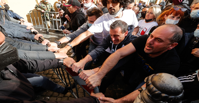 Korona virüs (Coivd-19) ile mücadele kapsamında aralarında İtalya'nın da bulunduğu birçok ülke salgına karşı kısıtlamalar uygulamaya devam ederken, başken Roma'da küçük işletme sahipleri kısıtlamalara karşı protesto düzenledi. Kısıtlamalar nedeniyle ekonomik sıkıntılar yaşadıklarını ifade eden protestocular, "özgürlük" sloganları atarak, Roma Parlamentosu meydanına zorla girmeye çalıştı. İtalyan polisi ise, protestoculara kalkan ve coplar ile müdahale ederek, meydandan uzaklaştırmaya çalıştı. Müdahale sırasında bir polis memuru ise, protestocular tarafından fırlatılan bir objenin başına isabet etmesi sonucu yaralandı.