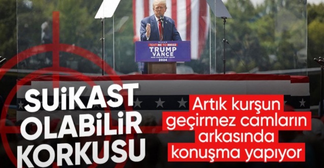 Trump, mitingde kurşun geçirmez camın arkasında konuştu