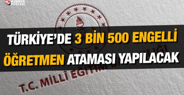 Bakanlıktan yapılan açıklamaya göre, 3 bin 500 engelli öğretmen ataması için 2020 ve 2022 EKPSS'den 50 ve üzeri puan alanlar 3-7 Nisan'da başvuru yapabilecek. Tercihler ise 12-15 Nisan'da yapılacak. Başvuru detaylarına ilişkin duyuru "personel.meb.gov.tr" adresinden ilan edilecek. Milli Eğitim Bakanı Mahmut Özer, sosyal medya hesabından yaptığı açıklamada, "25 Nisan'da 3 bin 500 engelli öğretmen ataması yapacağız. Başvurular, 3-7 Nisan arasında alınacak. Eğitim ailemize katılacak tüm öğretmenlerimize hayırlı olmasını diliyorum." ifadelerini kullandı.