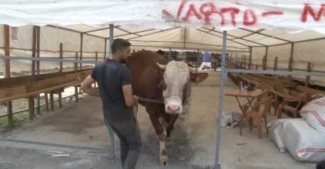 Kurban pazarının 1 tonluk 'Efe'si alıcısını bekliyor