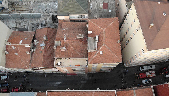 Öte yandan çökme tehlikesi nedeniyle boşaltılan apartman havadan görüntülendi.