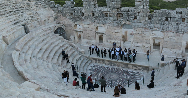 Bakan Kurum, ilk olarak 12-13 bin kişi kapasiteli stadyumunu gezdi. Bakan Kurum daha sonra kırmızı, yeşil ve beyaz mermerden yapılmış, yılanlardan oluşan saçları ile Medusa Mozaiğini inceledi. Burada Kibyra Kazı Başkanı Prof. Dr. Şükrü Özüdoğru'dan bilgiler alan Bakan Kurum, bir süre daha incelemelerde bulunduktan sonra bölgeden ayrıldı.