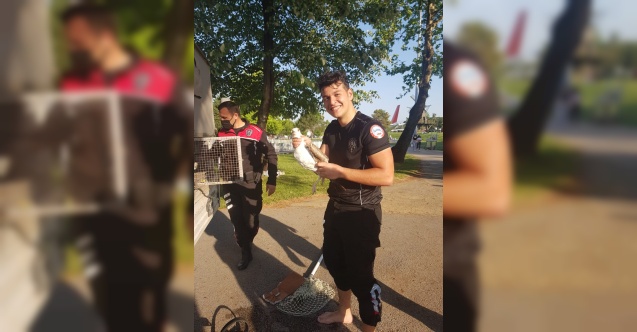 Sakarya'nın Adapazarı ilçesinde yaralı halde gölette çırpınan martıyı polis kurtardı.