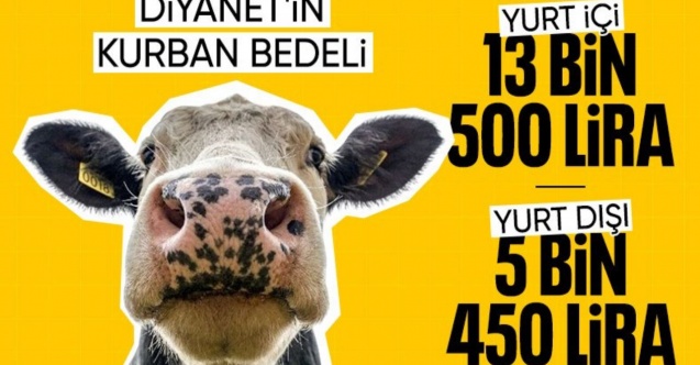 Diyanet İşleri Başkanı Ali Erbaş, vekaletle kurban kesim bedelinin yurt içinde 13 bin 500, yurt dışında ise 5 bin 450 lira olarak belirlendiğini bildirdi.