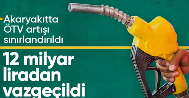 Cumhurbaşkanı Kararı'yla yeni yılda akaryakıt ürünlerinde yapılacak ÖTV artış oranı yüzde 6 ile sınırlandırılırken, böylece devlet 12 milyar liralık alacağından vazgeçmiş oldu.