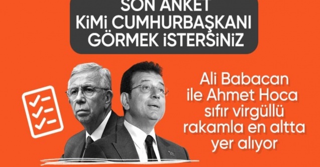 Anket çalışmasında vatandaşlara, "Bu Pazar Cumhurbaşkanlığı Seçimi Yapılsa Sizce Muhalefetin Adayı Kim Olmalıdır?" açık uçlu sorusunu yöneltti.
