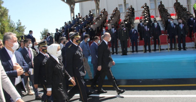 Bakan Soylu'nun konuşmasının ardından Malatya POMEM'de eğitimlerini tamamlayan 224 polis adayı tören geçişinin ardından yerlerini alarak yemin etti ve meslek hayatına ilk adımlarını attılar.
