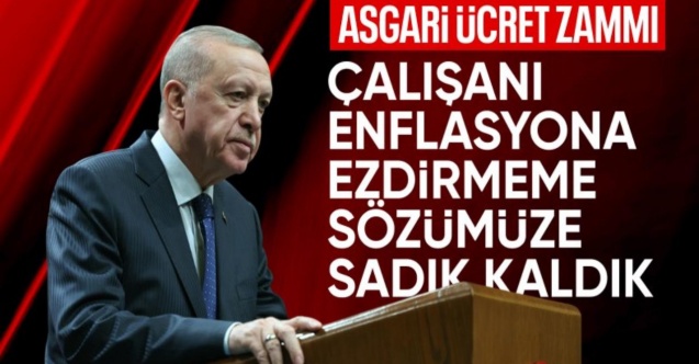 Grup toplantısında konuşan Cumhurbaşkanı Erdoğan, asgari ücrete de değindi ve "Çalışanlarımızı enflasyona ezdirmeme sözümüze bir kez daha sadık kaldık" dedi.