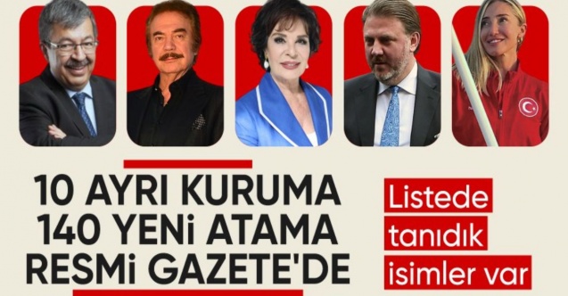 Cumhurbaşkanı Recep Tayyip Erdoğan'ın imzasıyla yayımlanan atama kararlarına göre birçok kamu kurum ve kuruluşunda görev değişiklikler yapıldı. Aralarında kamuoyunun yakından tanıdığı isimlerin de olduğu 140 yeni atama yapıldı.