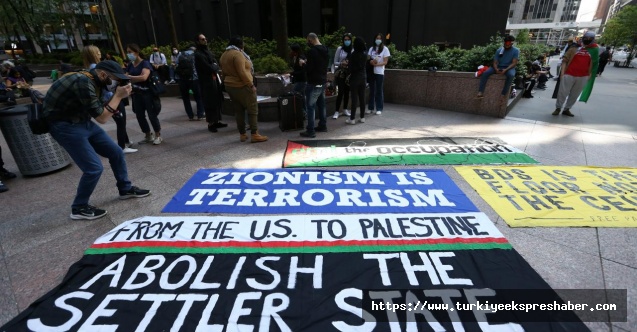 Manhattan`nın işlek caddelerinden birinde toplanan yüzlerce gösterici, İsrail`in Filistin işgalini, Filistinli ailelerin zorla evlerinden tahliyesini, Gazze`ye yönelik hava saldırılarını ve Filistinli sivil ölümlerini protesto etti.