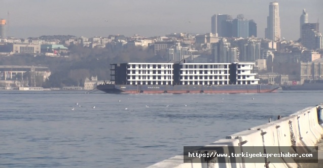 3 adet blok platform taşıyan 4 katlı apartmanı andıran Panama bayraklı Christos LXI adlı römorkör İstanbul Boğazı'ndan geçti.