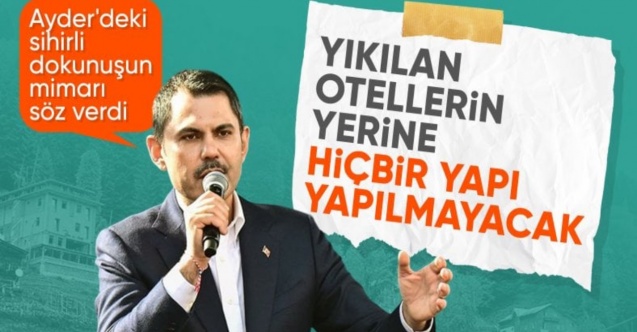 Orada yıkılan otellerin yerine de hiçbir yapı yapılmayacak. Yapmış olduğumuz çalışmalarda imar planında çerçevesinde yapılan çalışmalardır. Bu manada Çamlıhemşin Belediye Başkanımızla, Milletvekilimiz, Valimizle hep birlikte bu istişareleri yürütüyoruz. İnşallah nasıl horonla orada başladıysak yine aynı coşkuyla projemizi milletimize verdiğimiz sözler doğrultusunda tamamlayacağız.”ifadelerini kullandı.
