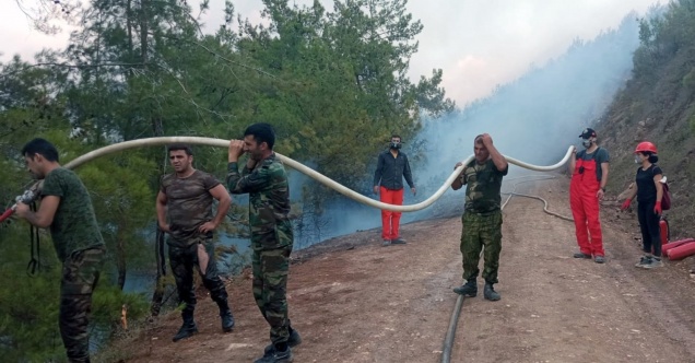 Muğla’da devam eden orman yangınların söndürülmesi için Azerbaycan’dan gelen itfaiyeciler alevlere ve dumanlara karşı büyük mücadele veriyor.