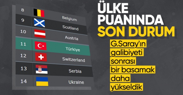 Galatasaray'ın galibiyetiyle birlikte Türkiye, bir basamak daha yükseldi.