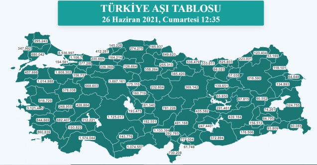26 Haziran 2021 saat 12.25 itibari ile Türkiye' de toplam kaç doz aşı vuruldu işte sonuçlar;