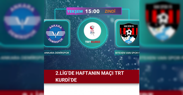 2.Lig Kırmızı Grup’ta 9 Nisan Pazar günü Ankara’da oynanacak ve saat 15.00’da başlayacak Ankara Demirspor-Bitexen Vanspor FK karşılaşması TRT Kurdi tarafından canlı olarak ekrana getirilecek.