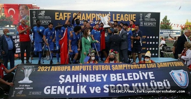 Gaziantep'te düzenlenen Avrupa Ampute Futbol Federasyonu (EAFF) Şampiyonlar Ligi finalinde Legia Varşova'yı 3-1 yenen ve şampiyon olan Şahinbey Belediyespor, kupasını aldı.