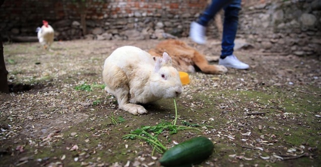 Yaralıyken sahiplendikleri tavşanı hayata bağladılar