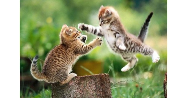 Rakip kediler gözdağı olarak birbirlerine bakarlar. İçlerinden biri göz kırparsa, pes ettiğini gösterir.