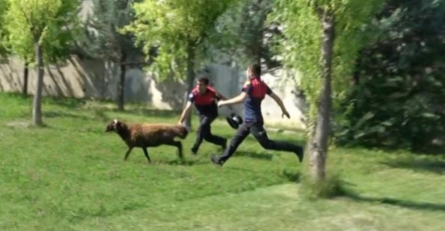 Tokat Belediyesi itfaiyesi önünde sahipsiz olarak dolaşan koçu ekipler fark etti. Kurbanlık koçu yakalamak isteyen itfaiye erleri, kaçan hayvanı takip etmeye başladı.