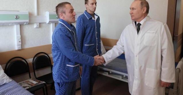 Putin'in, çarşamba günü başkent Moskova'daki Mandrika Askeri Hastanesi'nde Ukrayna savaşında yaralanan askerleri ziyaret ettiği bildirilmişti. Doktorların kullandığı beyaz önlükten giyen Putin'in el sıkıştığı askerlerden birine 9 aylık bebeğinin nasıl olduğunu sorduğu ve "Babasıyla gurur duyacak" dediği görülmüştü.