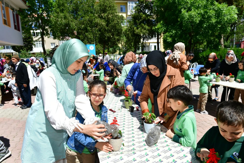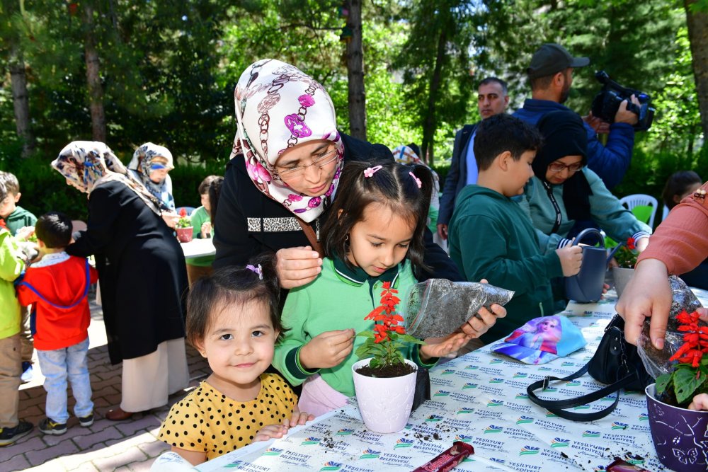 Yeşilyurt Belediyesi Kültür ve Sosyal İşler Müdürlüğü tarafından organizasyonu yapılan etkinliğinde, 100 anne ve 100 öğrenci tarafından hazırlanan saksılara çiçek dikimleri yapıldı. Anneleriyle birlikte keyifli anlar yaşayan çocuklar, hazırladıkları saksıları ‘Bugün Herşey Annem İçin’ yazılı özel platform önünde annelerine hediye ettiler.