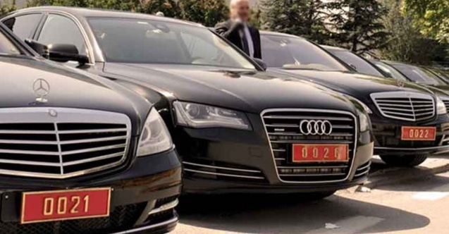 Kırmızı plakalar tıpkı devlet protokolü gibi sıralanıyor. Devlet yönetiminde yer alan isimlerin makam araçlarına verilen plaka sadece numaradan oluşuyor.