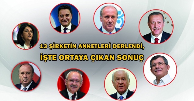 Buna göre; 13 araştırma şirketinin seçim anketi ortalamaları alındığında AK Parti yüzde 32,2 oy toplayarak birinci parti çıktı. AK Parti'nin Cumhur İttifakı ortağı MHP de yüzde 7,4 oy alarak planlanan yüzde 7'lik seçim barajının üzerinde yer aldı. Böylece Cumhur İttifakı'nı ortalama oy oranı yüzde 39,6'da seviyesinde kaldı.