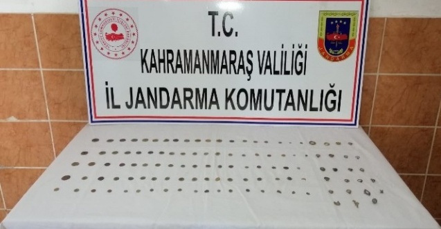 Afşin ilçesi Başüstü Mahallesinde yapılan operasyonda Roma dönemine ait olduğu değerlendirilen 92 adet tarihi eser niteliğindeki sikke, 18 adet tarihi eser niteliğinde yüzük, 5 adet tarihi eser niteliğinde obje ele geçirildi.