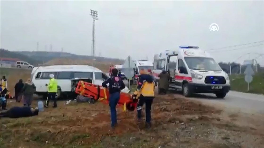 Amasya'da işçileri taşıyan minibüs devrildi: 17 kişi yaralandı