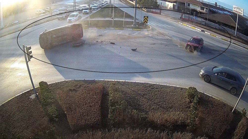 Kaza, anı ise güvenlik kameralarına saniye saniye yansıdı. Görüntülerde otomobil ile çarpışan otomobilin çarpışmanın ardından savrularak devrildiği, kazayı gören vatandaşların ise yardıma koştuğu görülüyor.