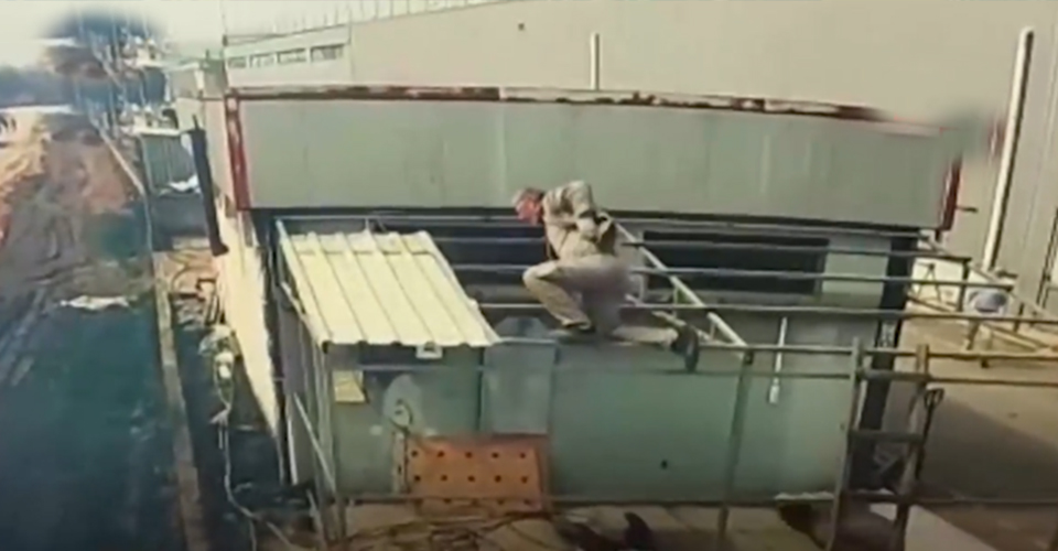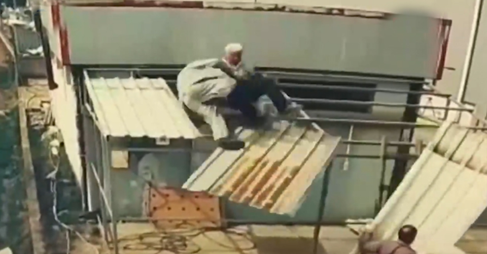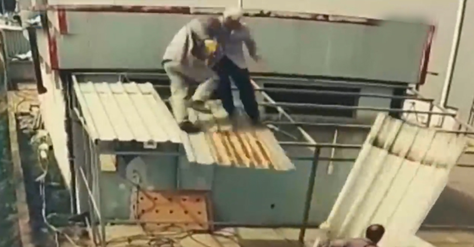 İşçilerin bastıkları levha bir anda kayınca böyle düştüler