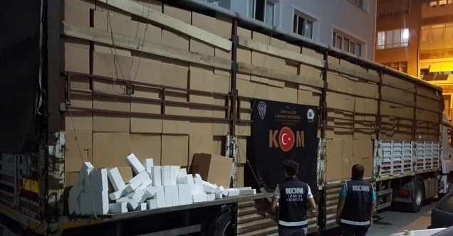 İzmir’in Buca ilçesinde, polis ekiplerince bir depo ve tıra düzenlenen operasyonda piyasa değeri 1 buçuk milyon lira değerinde 12 milyon 310 bin bandrolsüz gümrük kaçağı makaron ve 100 bin içi doldurulmuş sigara ele geçirildi. Olayla ilgili 4 şüpheli gözaltına alındı.